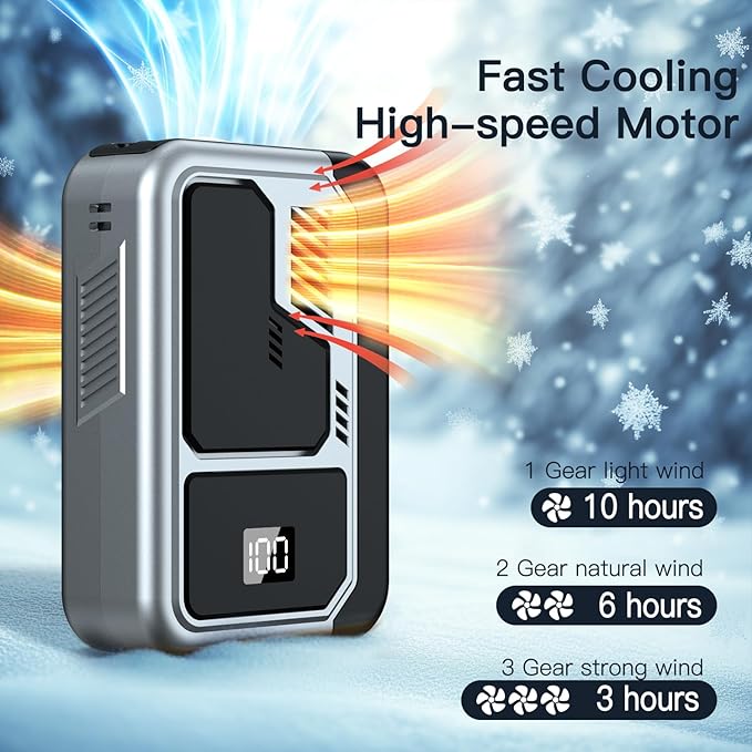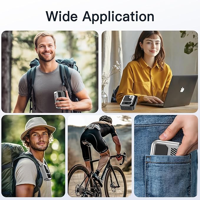 - 【Powerful Cooling with Quiet Performance】Our portable waist fan features a high-performance brushless motor with direct-through airflow technology, delivering exceptional cooling with 3 adjustable speed settings. The powerful turbine airflow reaches up to 10,000 RPM. You can enjoy quiet operation with gentle breeze (25dB) at level 1 or experience powerful cooling at level 3 on the hottest days,making it suitable for any environment from quiet offices to outdoor adventures.