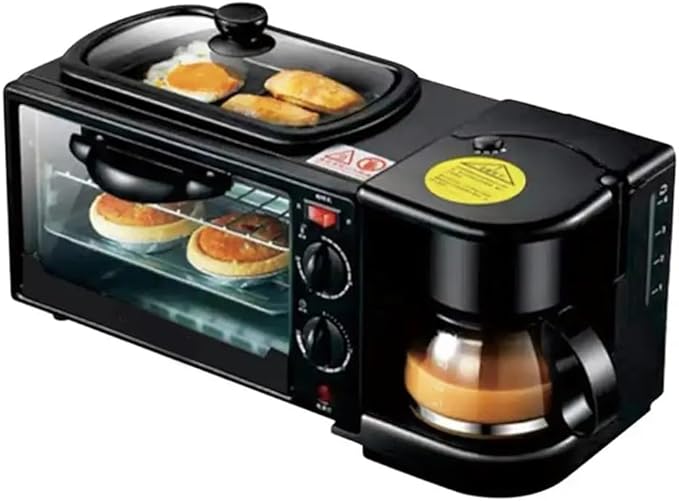 - All-in-One Breakfast Solution: Combines an oven, top tray, and coffee maker in one compact appliance.